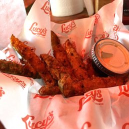 First time visit to Lucy's. We arrived and was immediately seated. We sat inside due to the heated weather conditions. The waiter assisted immediately to provide drinks. For the appetizer we tried the fried eggs which were ok and the fried pickles were a bit salty to me. We decided to try the catfish meal and was pretty good. Flavor was perfect and it came out smoking hot which I can appreciate. Overall nice spot and our waiter was very attentive.